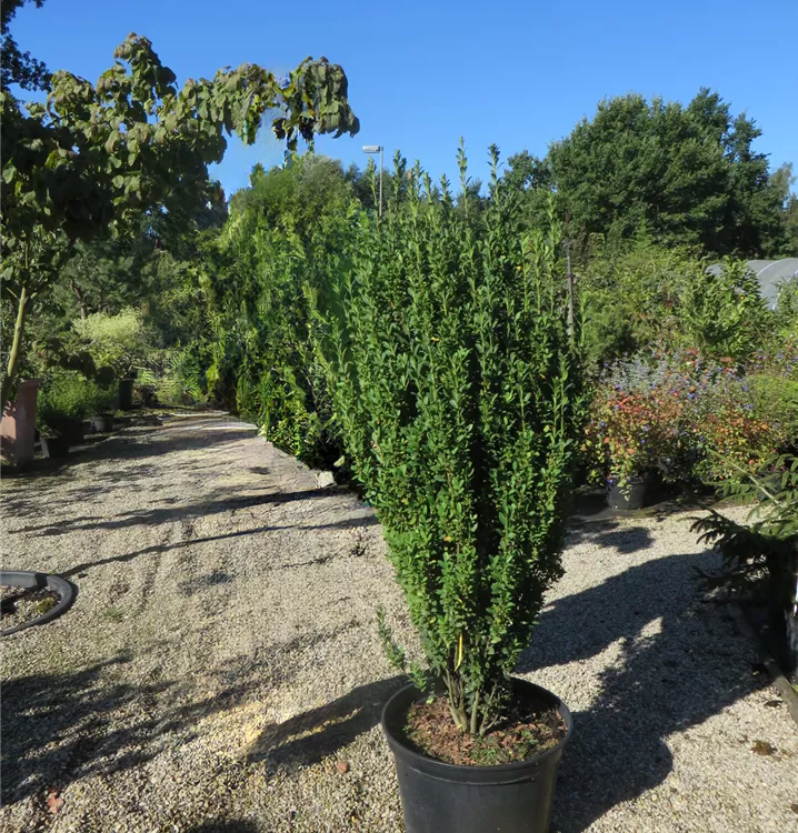 Japanese holly 'Fastigiata' is a columnar growing shrub. It usually reaches a height of 1 - 2 m and is approx. 40 - 60 cm wide. Slow growing. It usually grows 5 - 10 cm per year.