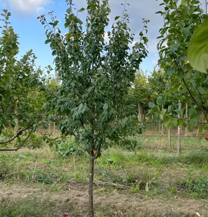 The Plum 'Bühler Frühzwetschke' (Prunus domestica) produces blue, juicy and easily stone-dissolving fruits. They are oval and have a sweet, aromatic flavour. Well-drained, humus-rich soil and a sunny to semi-shady location create the ideal conditions for a high-yielding harvest from July. Its white flowers are a beautiful sight. With its bushy, upright and broad growth, the Plum 'Bühler Frühzwetschke' grows to around 6 metres high and 6 metres wide.