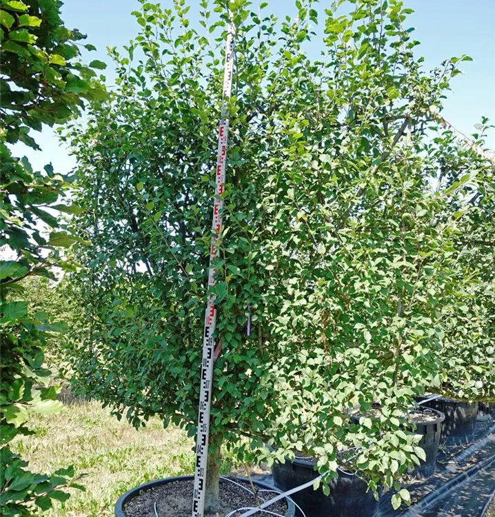 Plum 'Schönberger Zwetsche' is a bushy, upright and broad-growing small tree that can reach a height of 2.5 - 3 m and a width of 2.5 - 3 m.