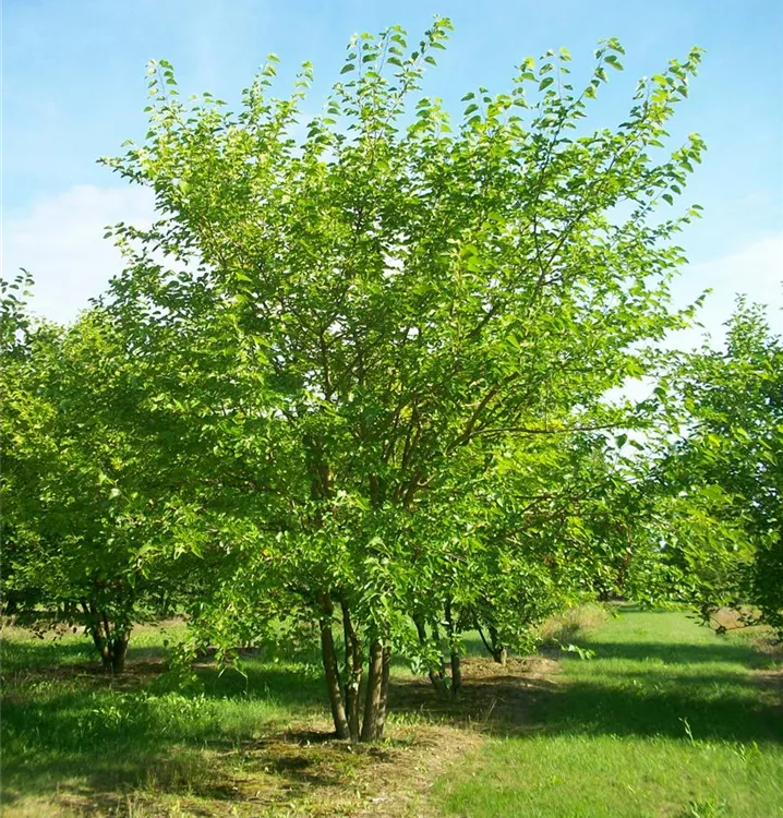 The black-red fruits have an aromatic flavour. The drupes are berry-like. Ripening time from August.