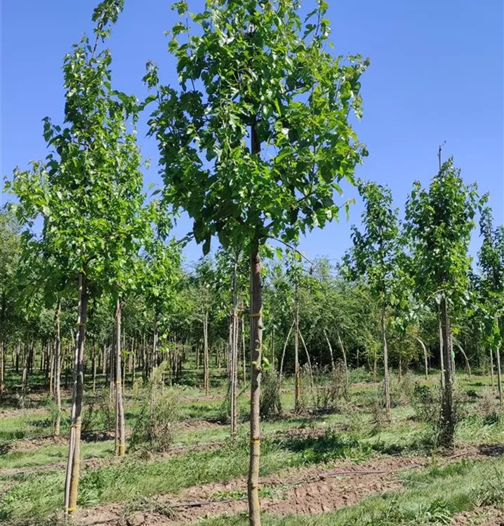 The Black mulberry (Morus nigra) produces black-red fruits. They are berry-like and have an aromatic flavour. Well-drained, calcareous, sandy, acidic soil and a sunny location create ideal conditions for a high-yielding harvest from August. Its inconspicuous flowers are a beautiful sight. The Black mulberry grows to around 15 metres high and 15 metres wide with its rounded habit.
