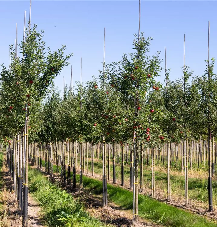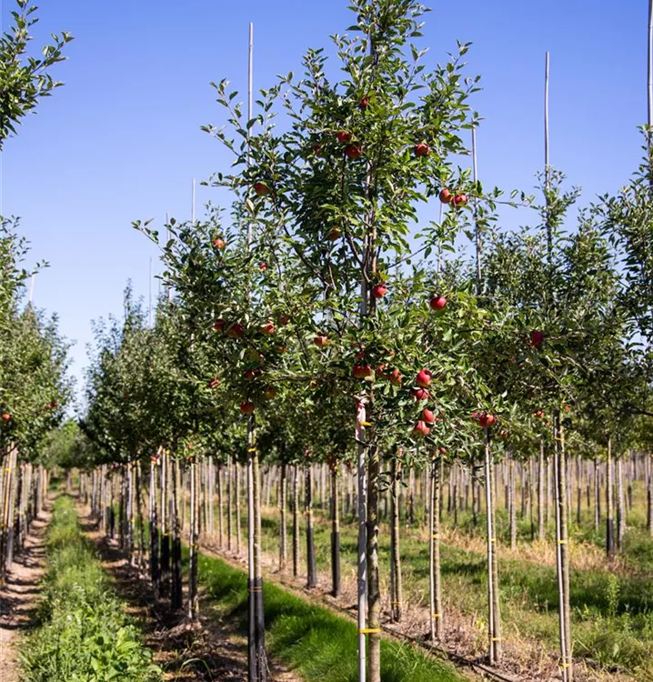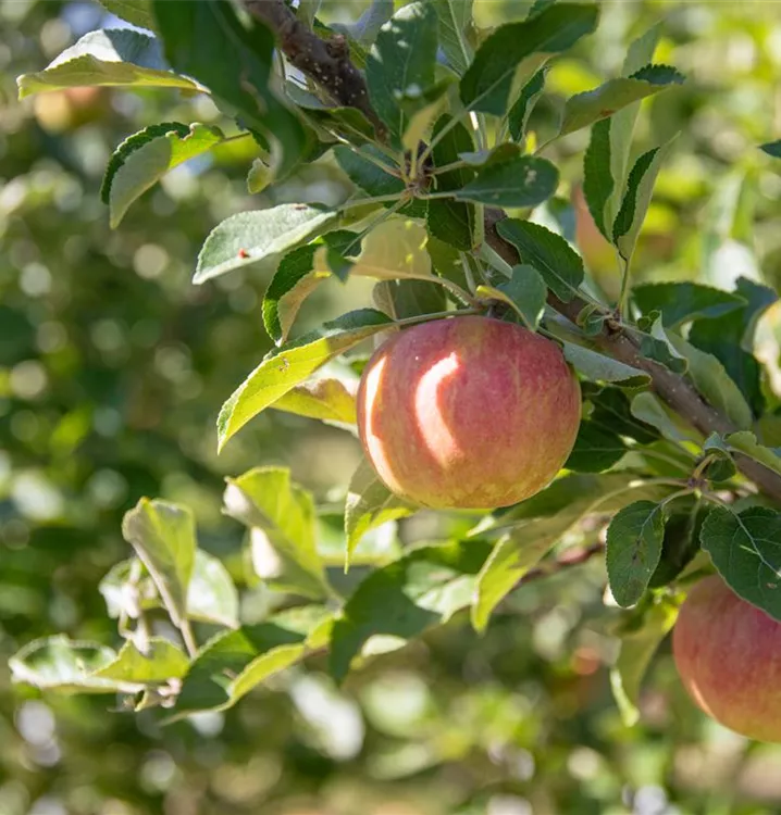 The Apple 'Cox Orange' (Malus domestica) produces yellow-red, juicy and crunchy fruits. They have a sweet, aromatic flavour. Well-drained, nutrient-rich soil and a sunny to semi-shady location create the ideal conditions for a high-yielding harvest from mid-September. Its light pink flowers are a beautiful sight. With its upright and broad growth, the Apple 'Cox Orange' grows to around 4 metres high and 3 metres wide.