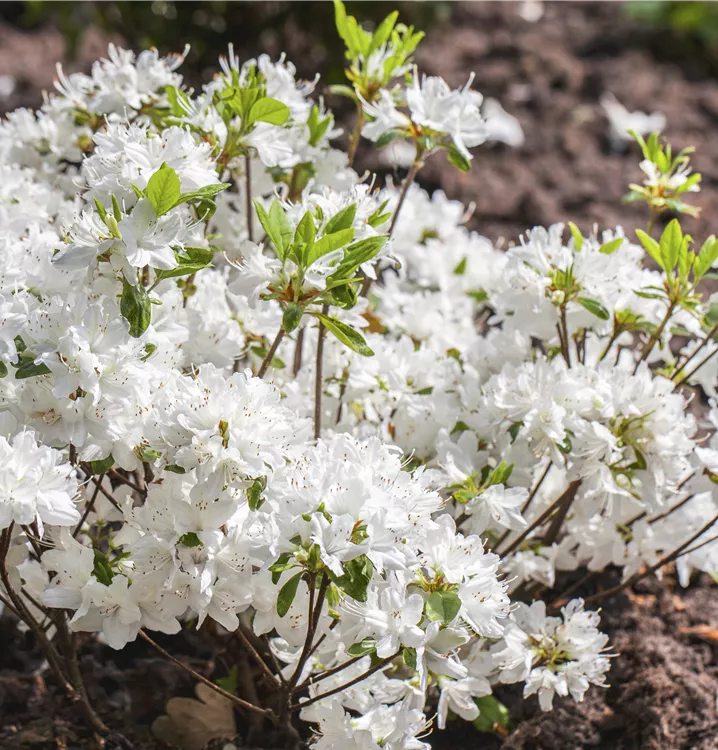 The Kirishima azalea 'Schneewittchen' (Rhododendron obtusum) produces a veritable sea of white flowers from the end of May to mid-June. Its winter-green foliage is medium green. This upright, stocky growing shrub usually reaches a height of 50 - 60 cm and a width of 60 to 80 cm. A semi-shady (to shady) location and well-drained, nutrient-rich, acidic soil create ideal conditions for healthy growth. The Kirishima azalea 'Schneewittchen' is well tolerant of frost.