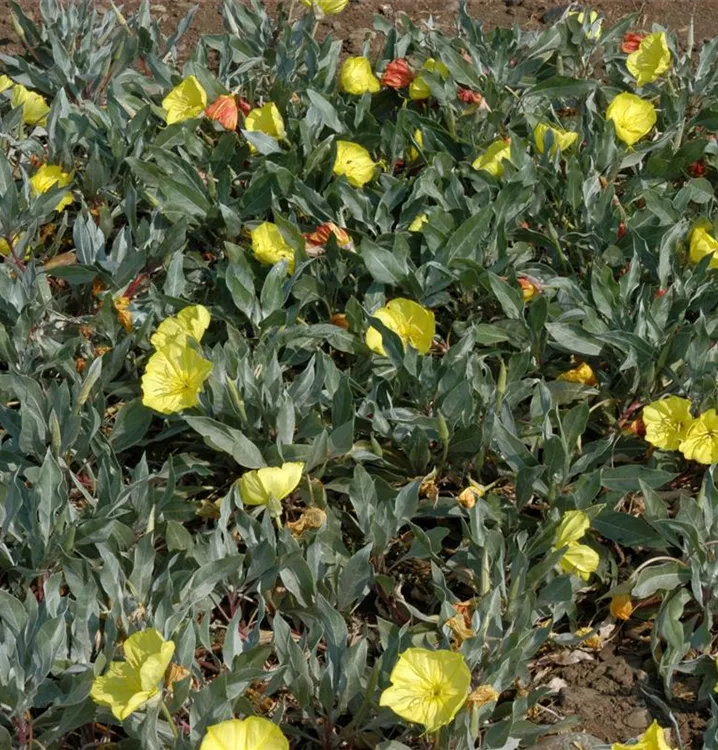 Produces large, showy, cup-shaped, bright lemon-yellow flowers that are typically 8-10 cm (3-4 inches) wide. These vibrant blooms open in the evening and usually remain open through the following afternoon. They appear profusely from late spring to early autumn (May to September), often in waves, providing a long-lasting display.