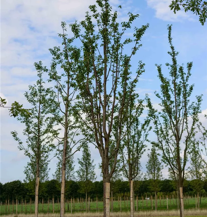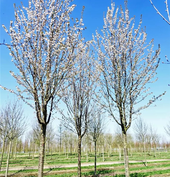 The Ornamental cherry (Prunus x schmittii) is a small ovoid tree with decorative fruits. It produces light pink, bowl-shaped flowers from April to May. The Ornamental cherry also has egg-shaped, dark green leaves. In a sunny to semi-shady location with well-drained soil, it usually grows to a height of around 8 metres and is around 3 metres wide.