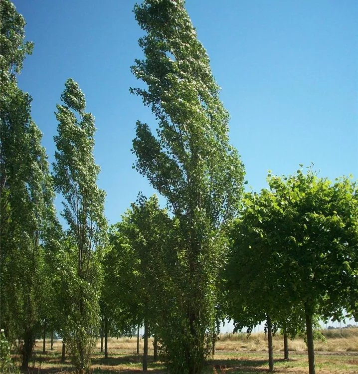 Populus nigra 'Italica' is a shallow-rooted or deep-rooted plant and, depending on the soil, forms densely branched, runner-forming roots.
