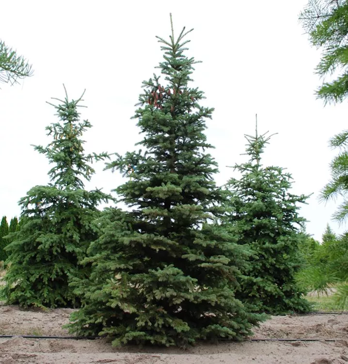 The Colorado spruce (Picea pungens) is a tree that grows in a conical shape and usually reaches a height of around 20 metres and a width of around 8 metres. Its needle-shaped leaves are blue-green in colour. Decorative light brown cones adorn Picea pungens from September. This shrub is well tolerant of frost and prefers well-drained soil in a sunny position.