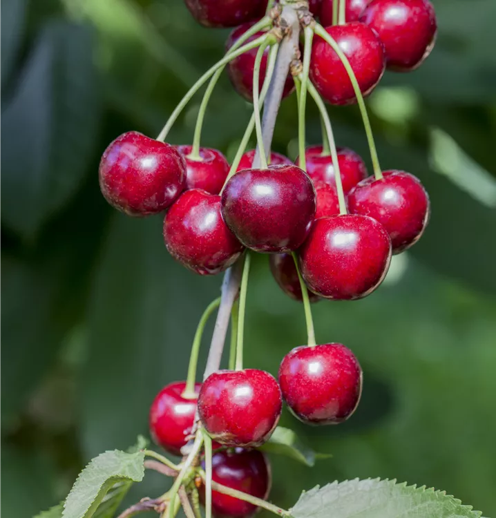 The Wild cherry 'Hedelfinger Riesenkirsche' (Prunus avium) produces red-brown, firm and cartilaginous fruits. They have a sweet flavour. Well-drained, calcareous, nutrient-rich soil and a sunny to semi-shady location create ideal conditions for a high-yielding harvest from mid-July. Its white, pleasantly fragrant flowers are a beautiful sight. The Wild cherry 'Hedelfinger Riesenkirsche' with its ovoid and upright habit grows to around 6 metres high and 4 metres wide.