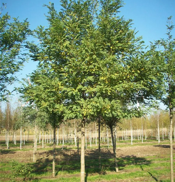 The brown, pod shaped fruits from the Robinia pseudoacacia 'Bessoniana' are especially decorative. They appear from September onwards. Can stay attached to Robinia pseudoacacia 'Bessoniana' for a long time.