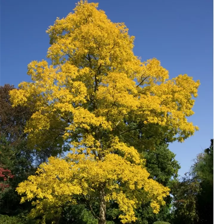 The False acacia 'Frisia' (Robinia pseudoacacia) is a roundish, upright small tree with decorative, brown, pod-shaped fruits that remain on the tree for a very long time. These exude a strong fragrance. It produces white flowers arranged in clusters from the end of May to the beginning of June. The False acacia 'Frisia' also has pinnate, yellow-green leaves. The orange-yellow shoots are also an interesting sight. In a sunny, sheltered location with well-drained, loose, sandy soil, it usually reaches a height of around 15 metres and grows to a width of around 8 metres.