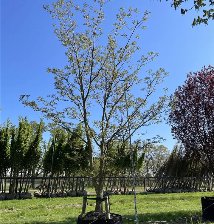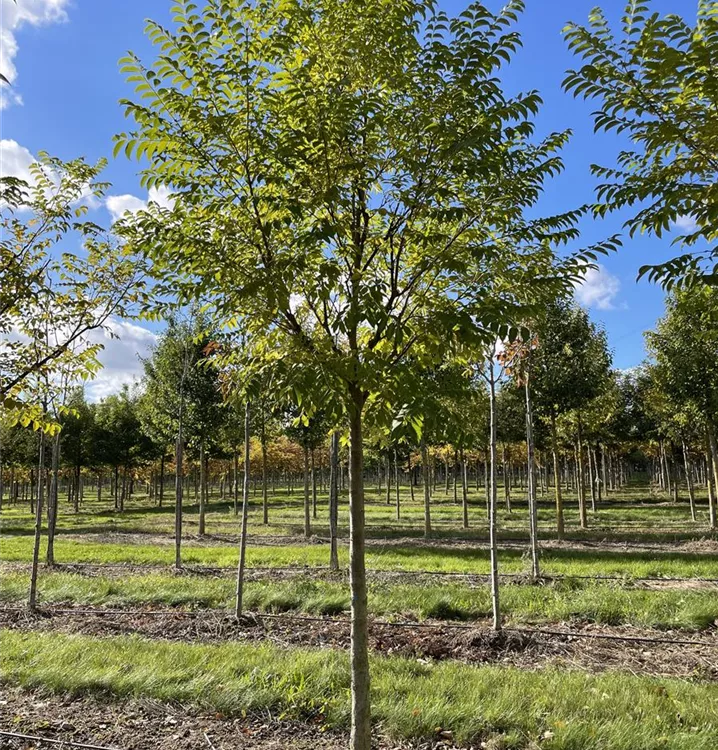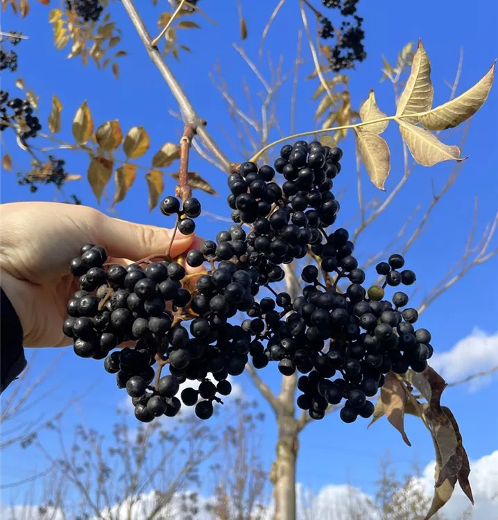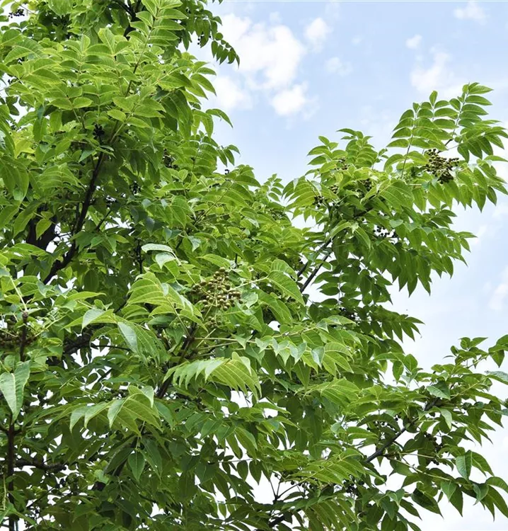 The Amur corktree (Phellodendron amurense) is a broad, picturesque small tree that produces greenish-yellow flowers arranged in panicles. They appear in June. These produce black, round fruits. The Amur corktree also has pinnate, dark green leaves. In a sunny location with well-drained, nutrient-rich soil, it usually reaches a height of around 15 metres and grows to a width of around 15 metres.