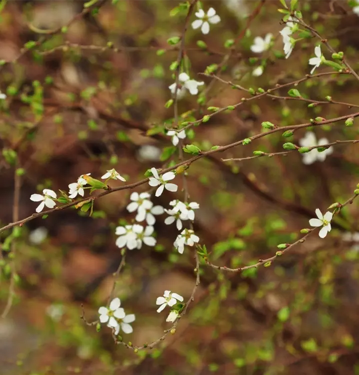 The Thunberg spiraea (Spiraea thunbergii) is a bushy, loose small shrub that produces white flowers arranged in umbels. They appear from April to May. The Thunberg spiraea also has lanceolate, light green leaves. In a sunny to semi-shady location with loose, nutrient-rich soil, it usually reaches a height of approx. 1.2 metres and grows to a width of approx. 1.2 metres.