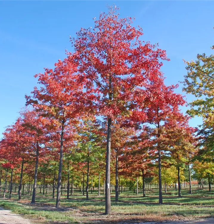 Quercus palustris is a heartroot and, depending on the soil, forms roots close to the surface.