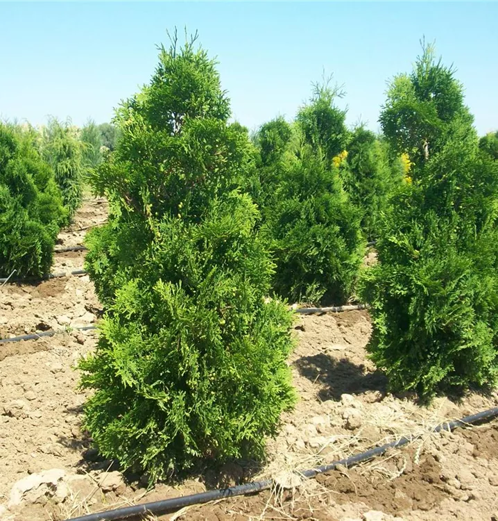Thuja occidentalis 'Columna' is a shallow-rooted or heart-rooted tree and, depending on the soil, forms finely branched roots close to the surface.