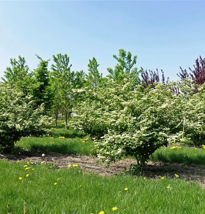 Japanese snowball is an upright and spreading shrub. It usually reaches a height of 1.5 - 3 m and is approx. 2 - 3 m wide. Slow-growing.