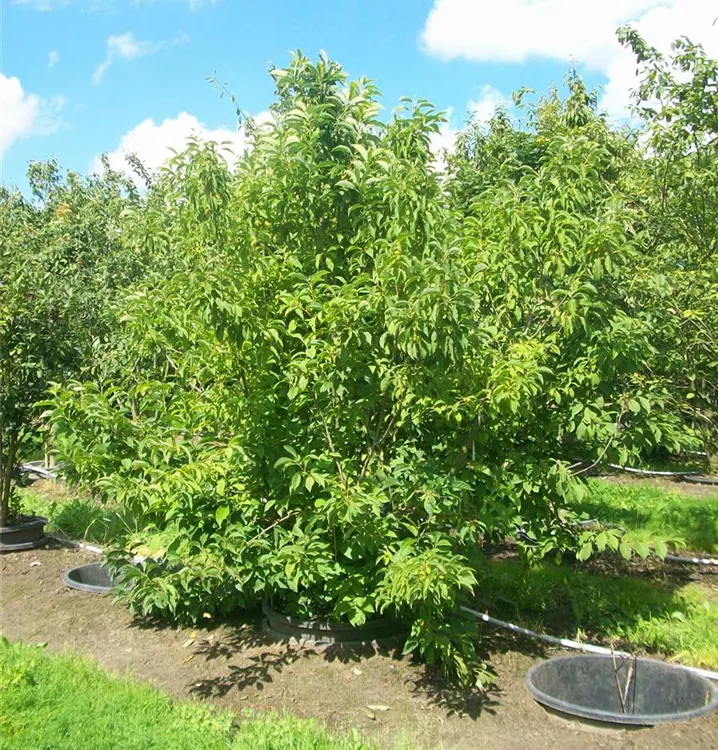 The Carolina silverbell (Halesia carolina) is an overhanging, picturesque large shrub with decorative, brown-yellow winged fruits that stay on for a very long time. It produces white, bell-shaped flowers from April to May. The Carolina silverbell also has matt, egg-shaped, medium green leaves. In a sunny to semi-shady, wind-protected location with well-drained, humus-rich, loose, nutrient-rich soil, it usually reaches a height of approx. 8 m and is approx. 8 m wide.