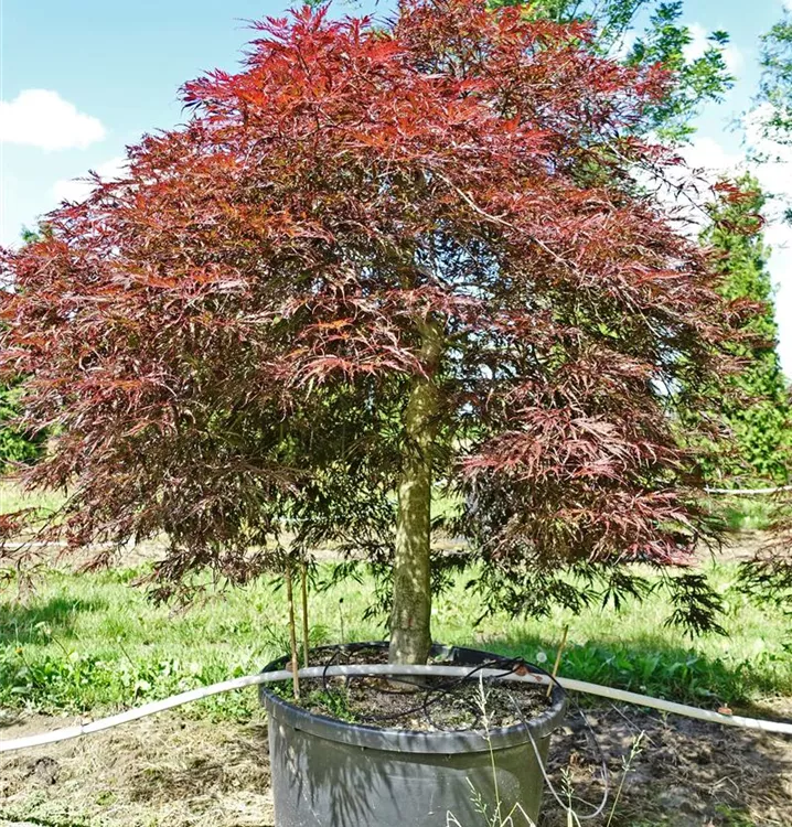 Japanese maple 'Inaba-shidare' is a stocky and overhanging shrub. It usually reaches a height of 2 - 2.5 m and is approx. 2.5 - 3 m wide. Slow-growing.