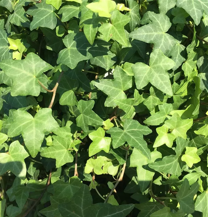 The Common ivy (Hedera helix) is a climbing, creeping, evergreen plant with decorative, blue fruits. It produces greenish-yellow flowers arranged in umbels from September to October. The Common ivy also has leathery, heart-shaped, dark green leaves. In a semi-shady to shady location with humusy, calcareous, nutrient-rich soil, it usually reaches a height of approx. 30 cm and is approx. 5 m wide.