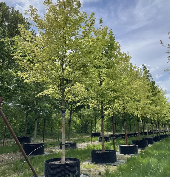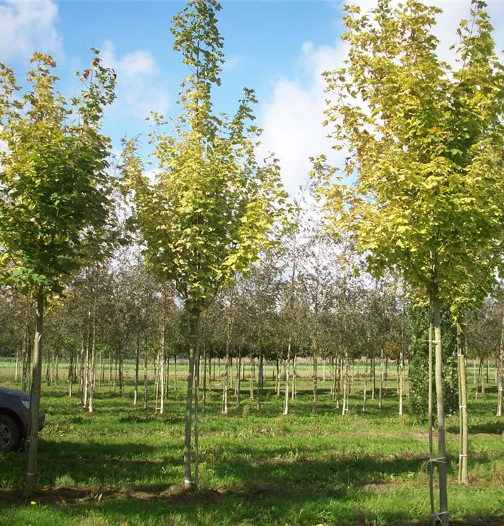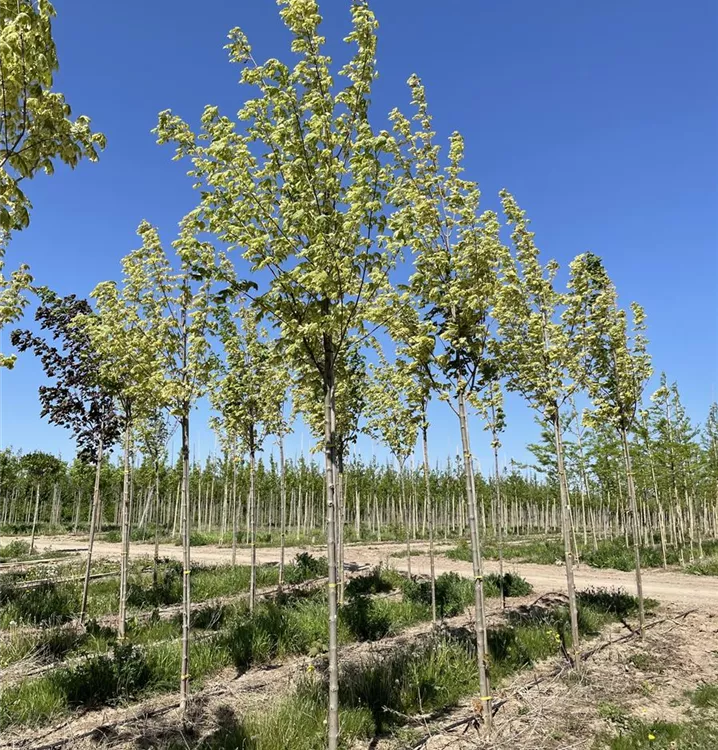 Norway maple 'Drummondii' is a dense and pyramidal small tree. It usually reaches a height of 10 - 12 m and is approx. 7 - 9 m wide. Slow growing.
