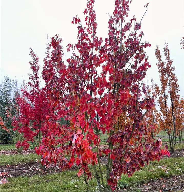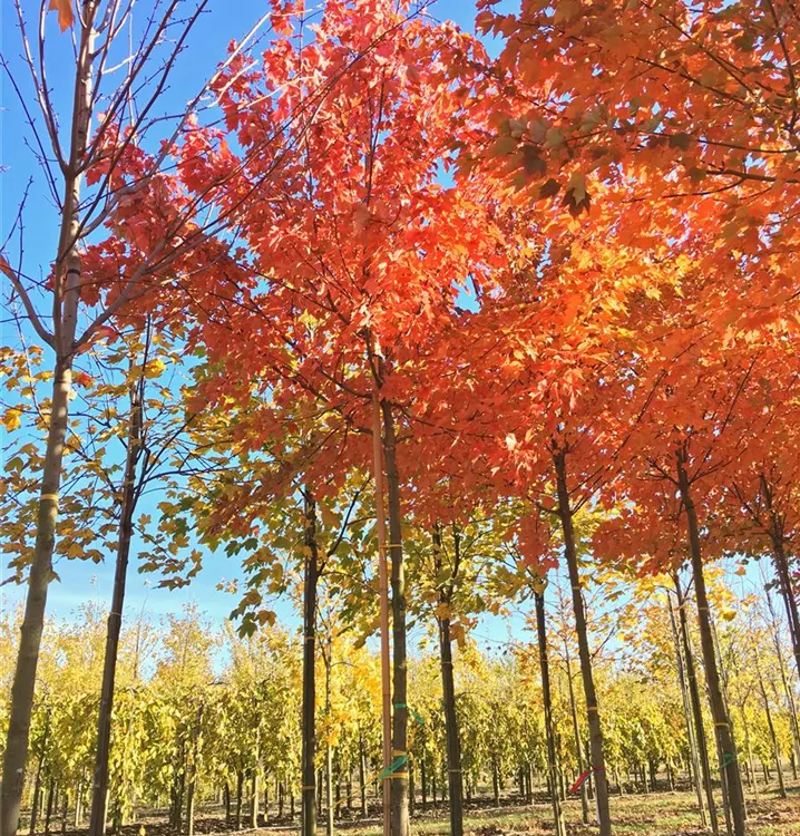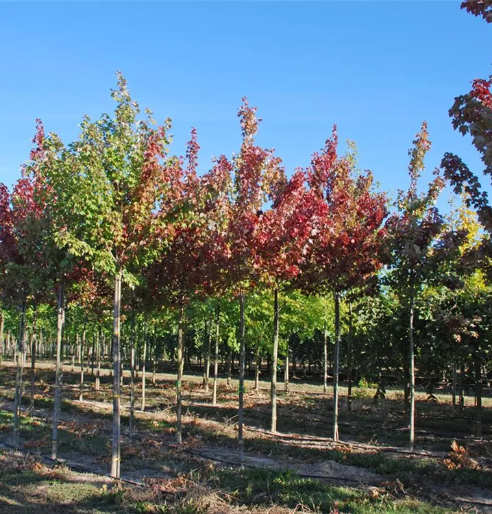 Red maple 'October Glory' is a pyramidal small tree with a loose crown. It usually reaches a height of 10 - 15 m and is approx. 9 - 10 m wide.