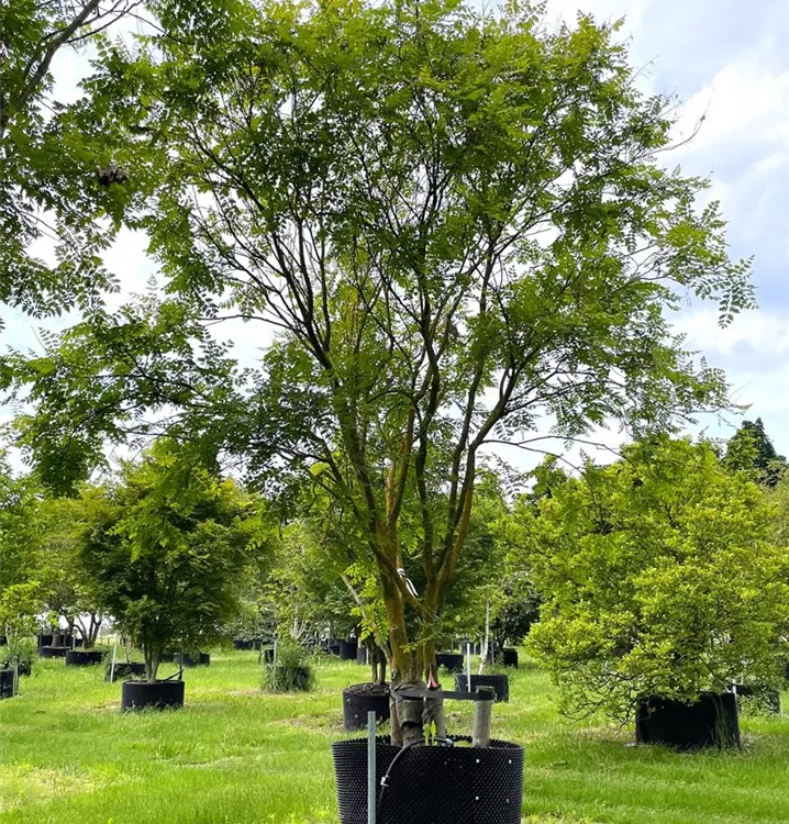 Pride of India is an upright and broad-growing small tree with a loose, translucent crown. It usually reaches a height of 6 - 8 m and is approx. 4 - 5 m wide. It usually grows 20 - 25 cm per year.