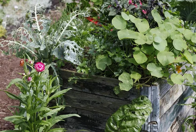 When cabbage, carrots, radishes, lettuce, onions, etc., are allowed to flower, it not only looks very pretty, but it also provides a richly laid table for many insects. Some types of vegetables even flower quite profusely, and you can, in turn, spice up your own menu with them. For example, the flowers of zucchini, lamb's lettuce, arugula, and others are quite edible.