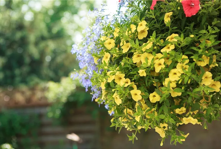 All that's left are the plants! If you want to snack from your hanging baskets, consider planting hanging strawberries. Nasturtiums also trail beautifully from the planter, and their flowers are a lovely addition to a summer salad. Any other trailing plants are also suitable for tin can hanging baskets. However, the plants shouldn't grow too large, as their roots will have limited space in the cans.