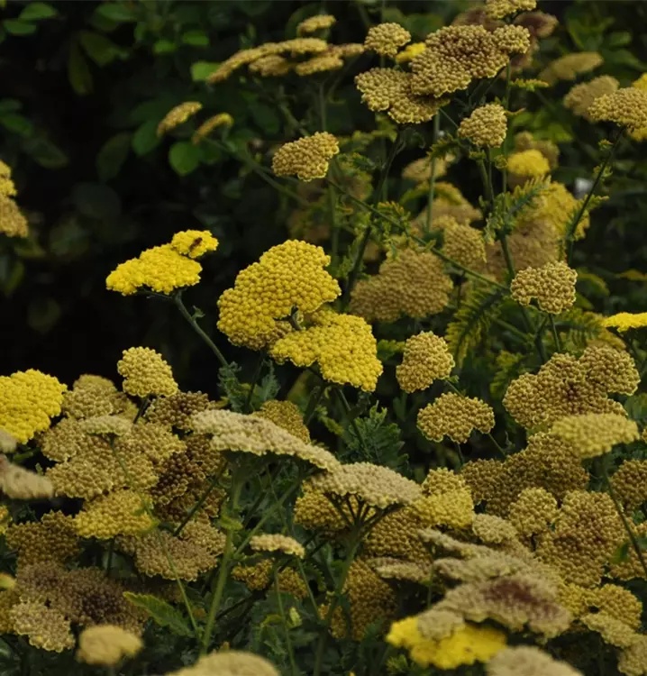 Achillea clypeolata 'Moonshine' образует лимонно-желтые цветки, расположенные в зонтиках с июня. При правильном уходе повторно зацветает в сентябре.